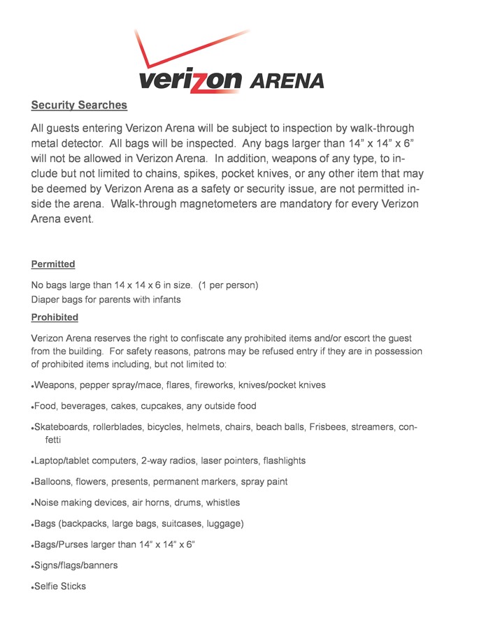 Click HERE or scroll down for information on practice, parking, dress, security, pictures, special accommodations, important dates, and Line 89. Also, be sure to check out Verizon Arena's Bag Policy!