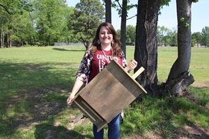Ms. Savage then contacted Sgt. Terry Ball at the Cabot Freshman Academy to see if his shop students would be willing to help her class. They were excited to be part of the project and even volunteered to make the two bat houses for Mrs. Savage's class for free. Mrs. Savage and Mrs. Falcinelli even had the opportunity to put in the finishing nails! Each bat house holds 24 bats. Right now one is hanging in a tree behind Central Elementary. The other bat house will go up soon.