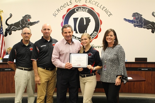 Another incredible donation from a Cabot Church was unveiled and two CHS seniors were recognized at the August school board meeting.
