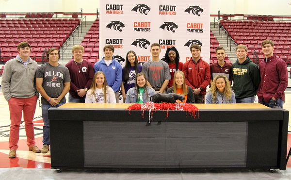 Cabot High School recently held the largest National Signing Day as fifteen seniors signed letters of intent to play the sport of their choice next fall at the college level.