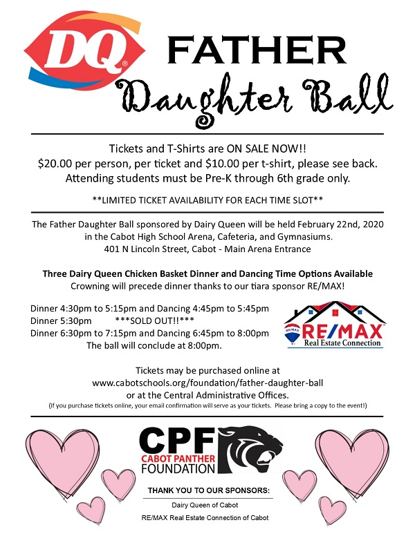 The Cabot Panther Foundation is hosting the 7th annual "Father Daughter Ball" sponsored by Dairy Queen on February 22, 2020!