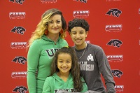 The first signee was Makeely Wade. Makeely has been playing volleyball at Cabot for six years and Coach Robertson has coached her the entire time. When introducing Makeely, Coach Robertson said that in volleyball the setter is like the quarterback on the team. Makeely was the quarterback and center of their team.