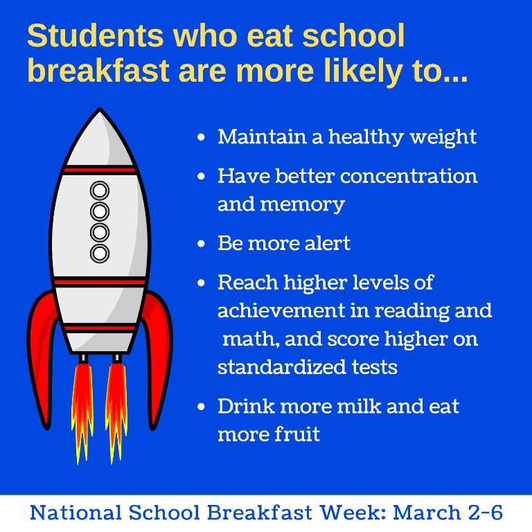 National School Breakfast Week is March 2-6, 2020. This year the theme is “School Breakfast: Out of this World.”